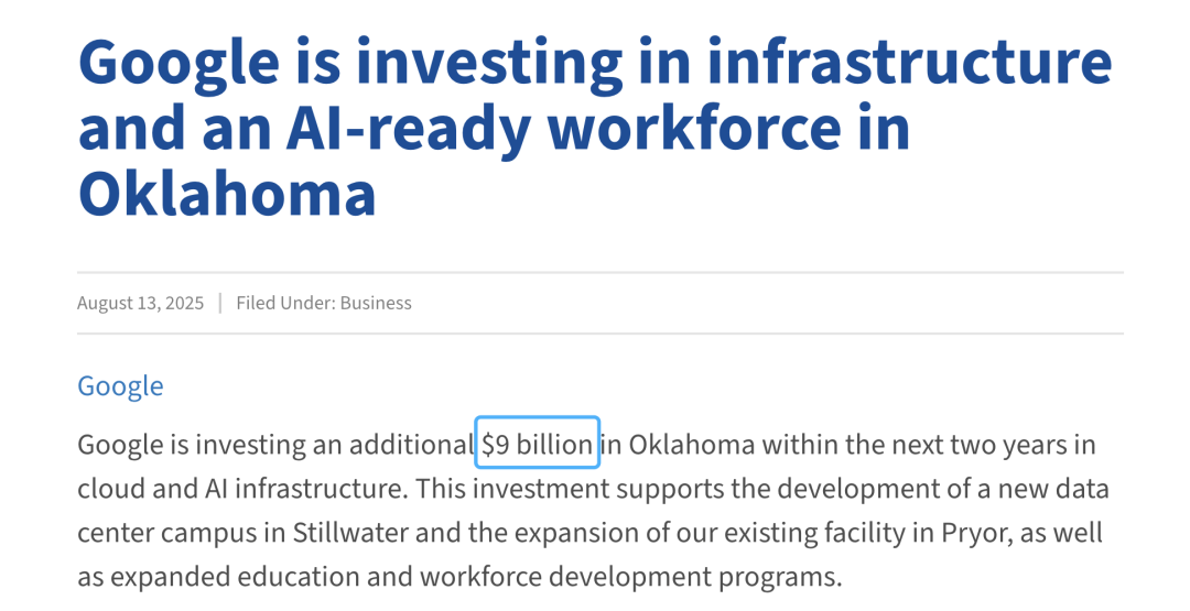西部部门学校则缺乏边缘办事器,先后出台了以白宫行政令、国度AI教育步履打算为代表的一系列顶层文件,谷歌许诺将来两年投资90亿美元用于扩建美国AI云取数据核心图片来历于Oklahoma Commerce官网截图为了破解上述区域间不服衡的难题,教育部举办部中小学教师人工智能素养提拔专题培训班图片来历于教育部官网截图美国教师AI培训更多由企业、高校取平台配合供给图片来历于谷歌、微软官网截图